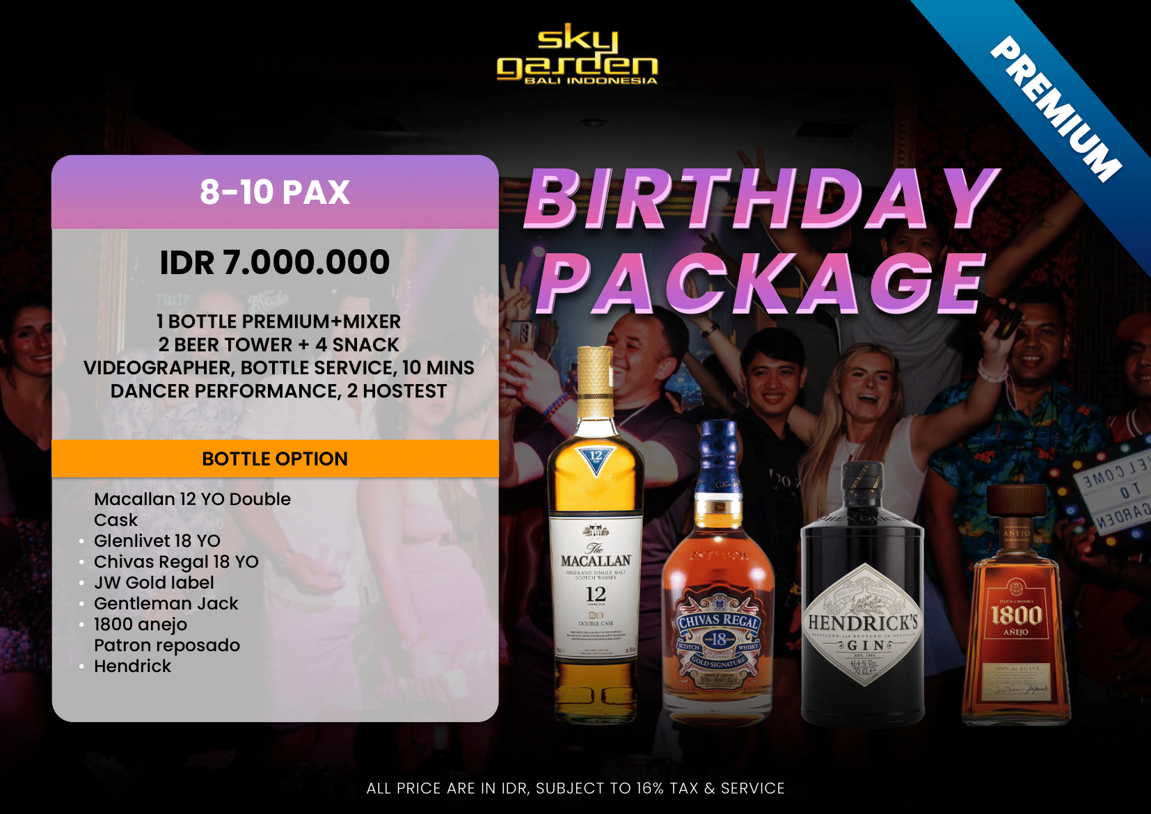 Indulge in an exclusive birthday experience at Sky Garden Bali, where luxury meets celebration. Designed for those seeking an unforgettable night of opulence, our Premium Birthday Package offers world-class amenities, premium spirits, and bespoke services to elevate your special day.